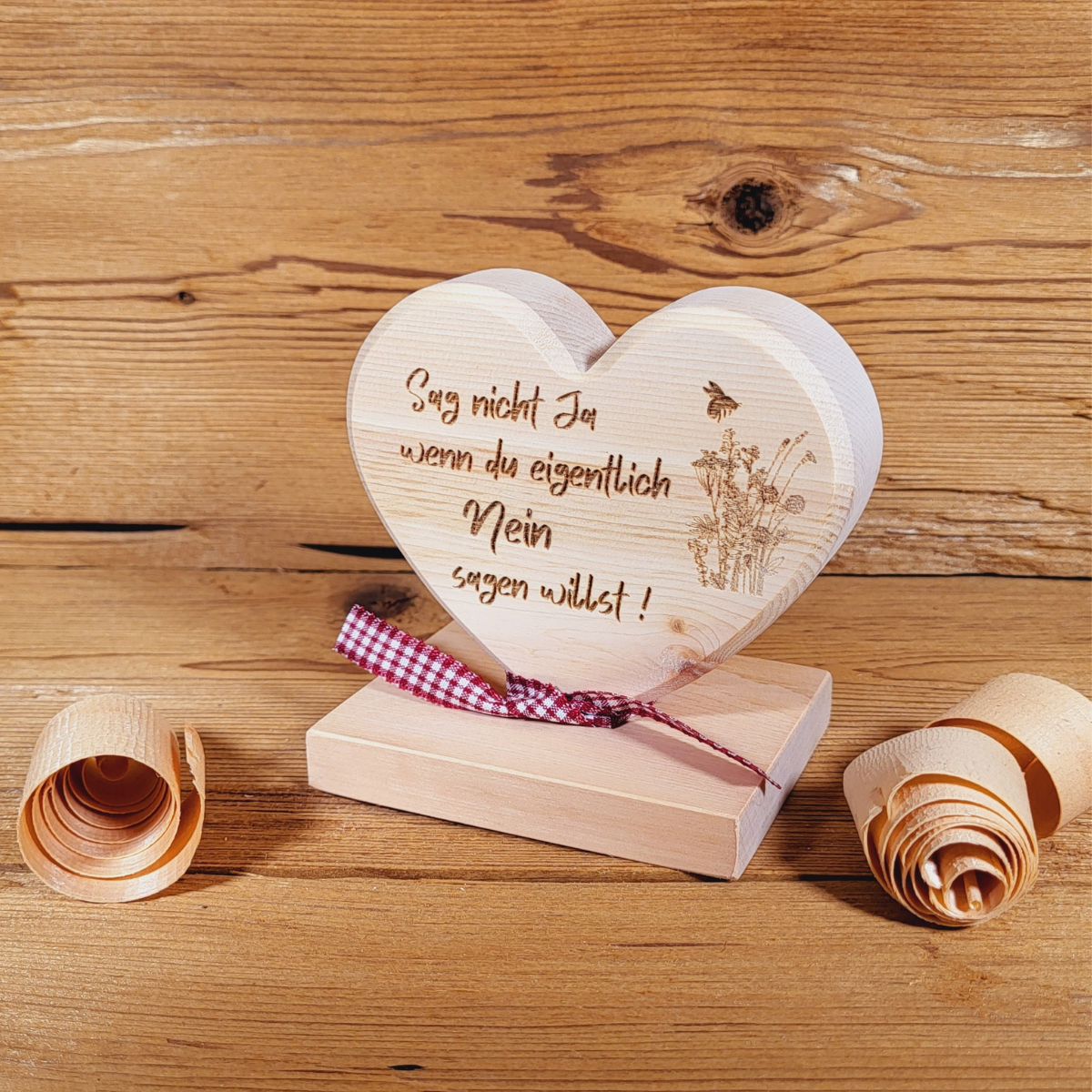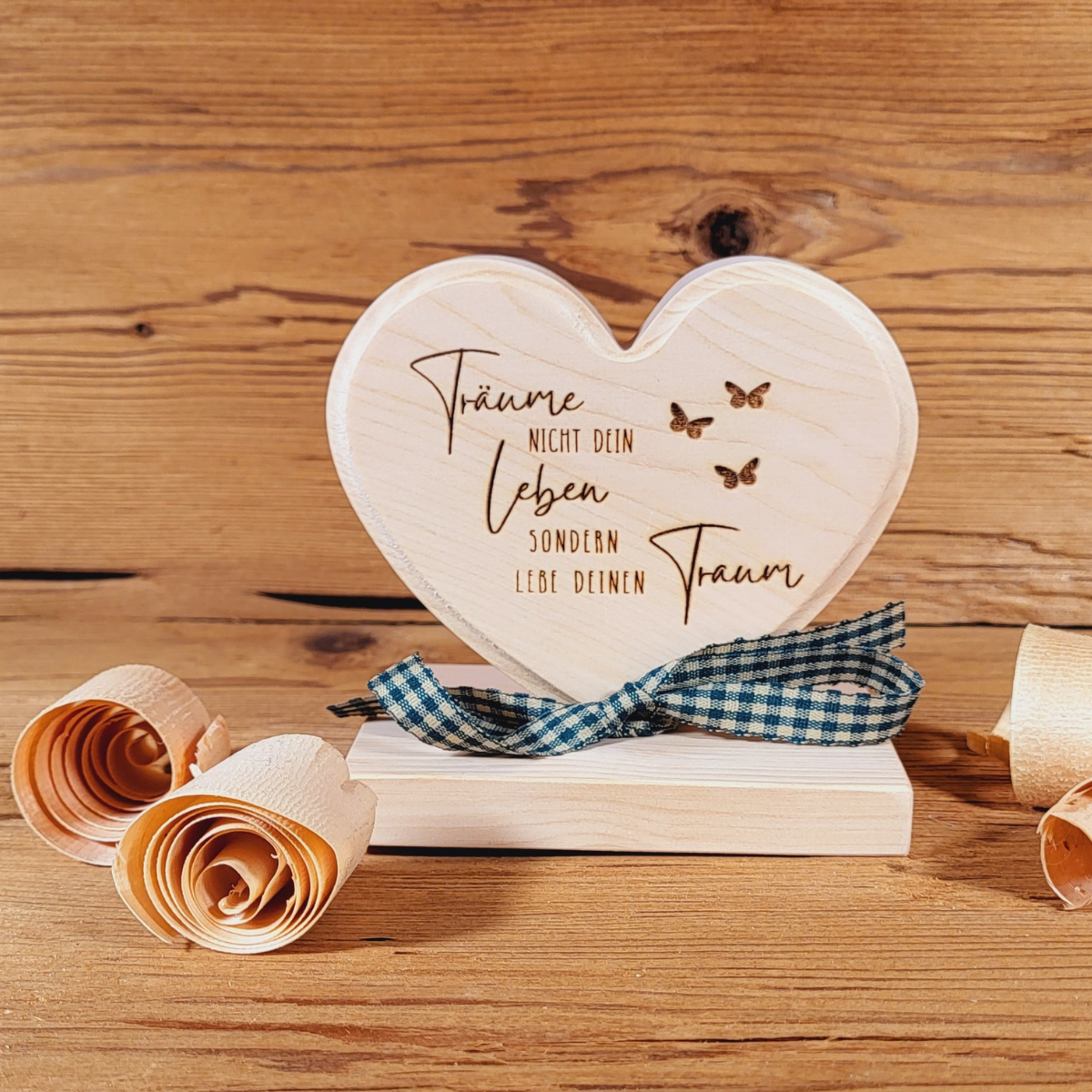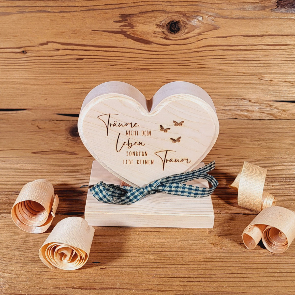 Zirben Dekoration aus ausgesuchten und unbehandelten Zirbenholz gefertigt. Jedes Stück ist ein Unikat. Gravur: Folge Deinem Herzen und lebe Deinen Traum