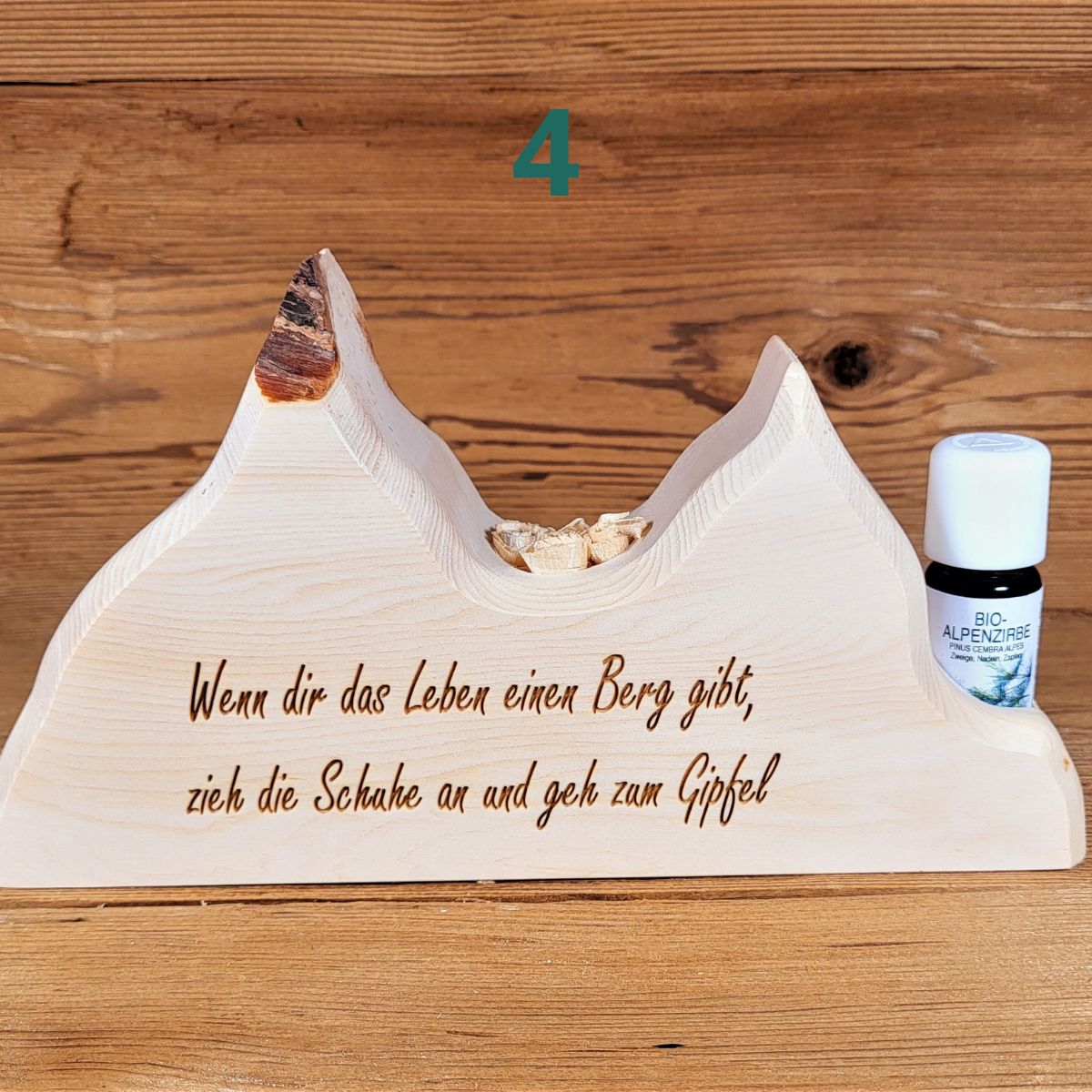| INDIVIDUELLE GRAVUR MÖGLICH | Mit feinster Lasergravur kann der Zirbenberg nach deinen Wünschen graviert werden. |